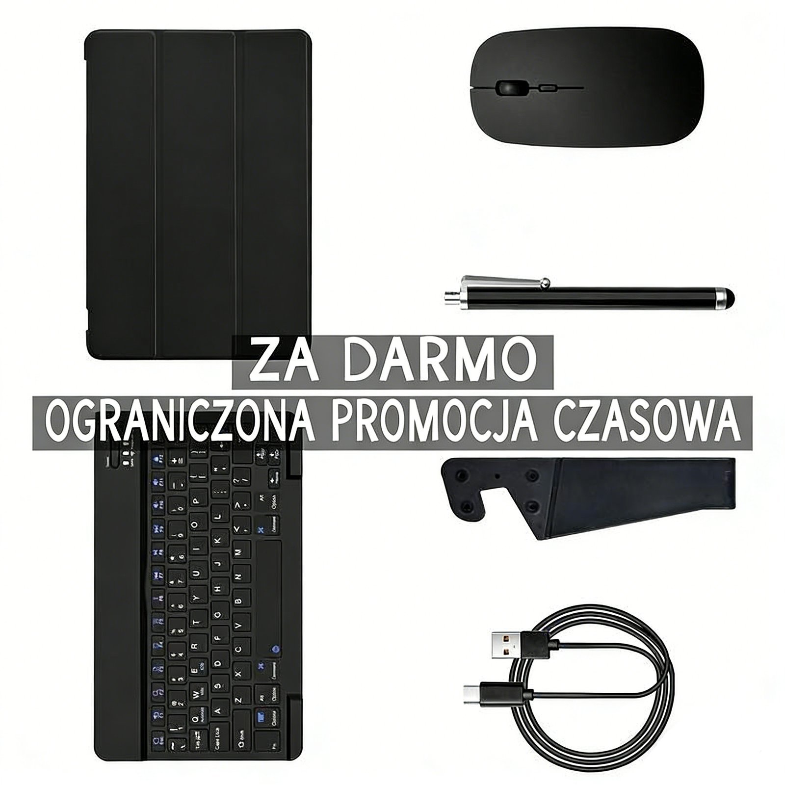 Co widzisz, co dostajesz: Kup 1 tablet i otrzymaj: klawiaturę, mysz, etui, rysik i składaną podstawkę.